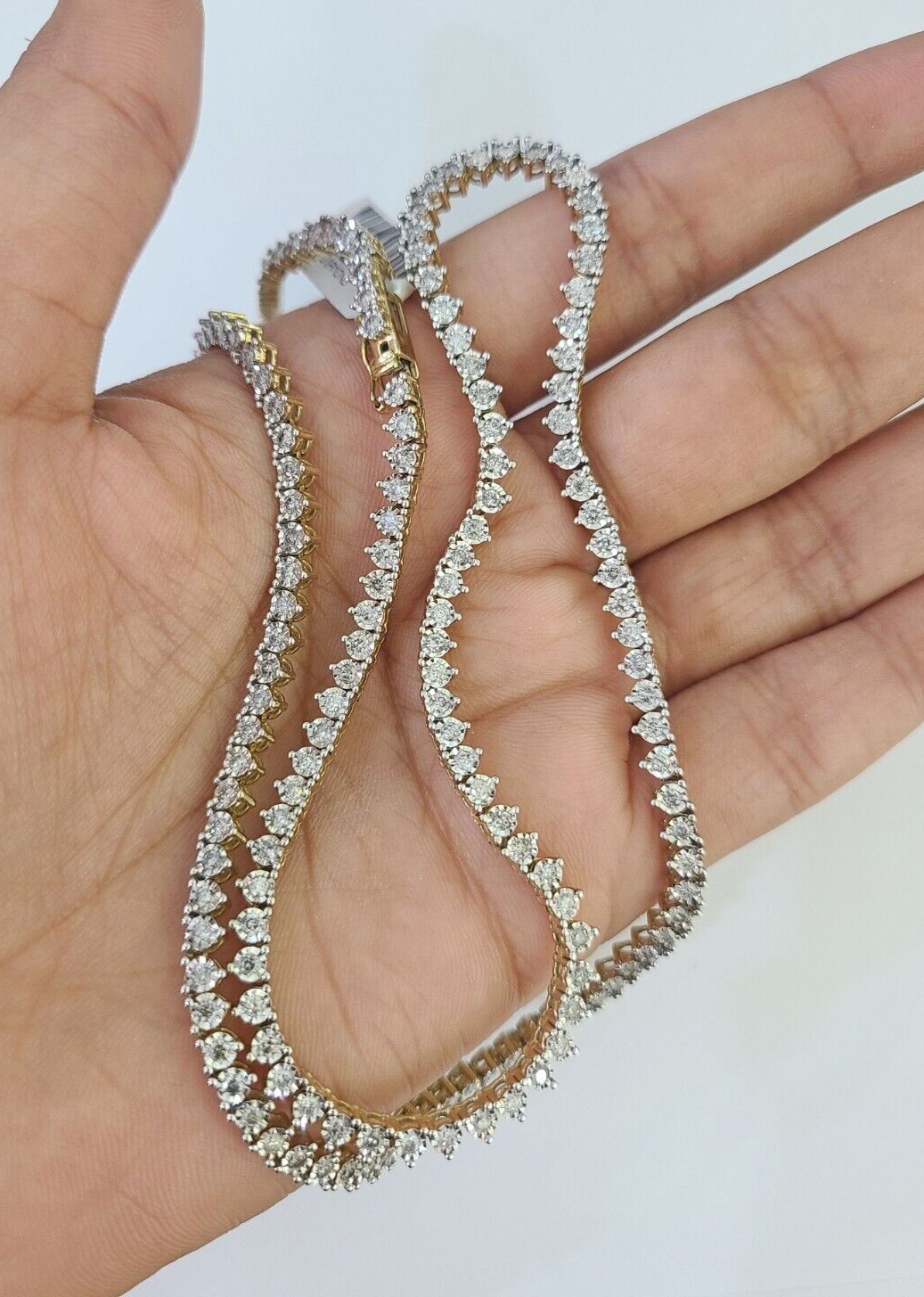 10k Diamond Chain Necklace Yellow Gold Men Women Diamond Cuts Real Genuine