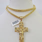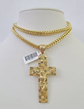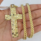 10K Franco Chain Jesus Cross Pendant Charm Necklace 20"-26" 5mm Gold SET Yellow