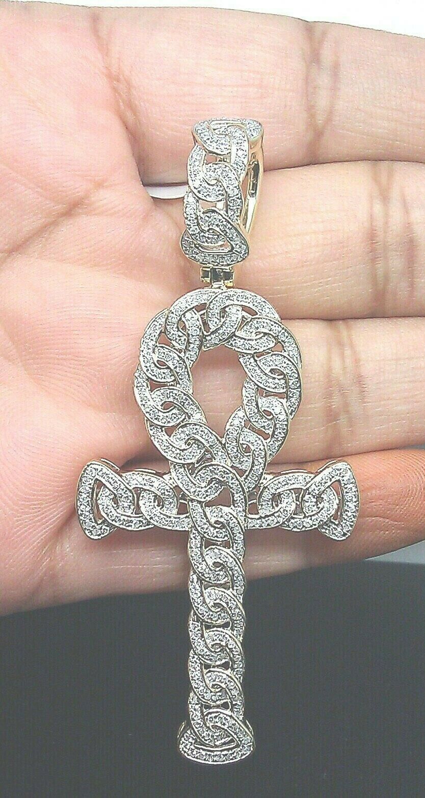 Is Presenting You with This Absolutely Stunning 10K Men's Yellow Gold Ankh Charm With 0.86-0.90 CT Diamond 2.3" Long #Cross, Angel