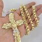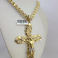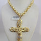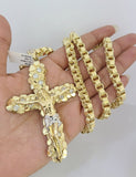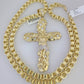 10k Gold Necklace Byzantine Jesus Cross Pendant Charm 20"-30" SET 7mm Chain