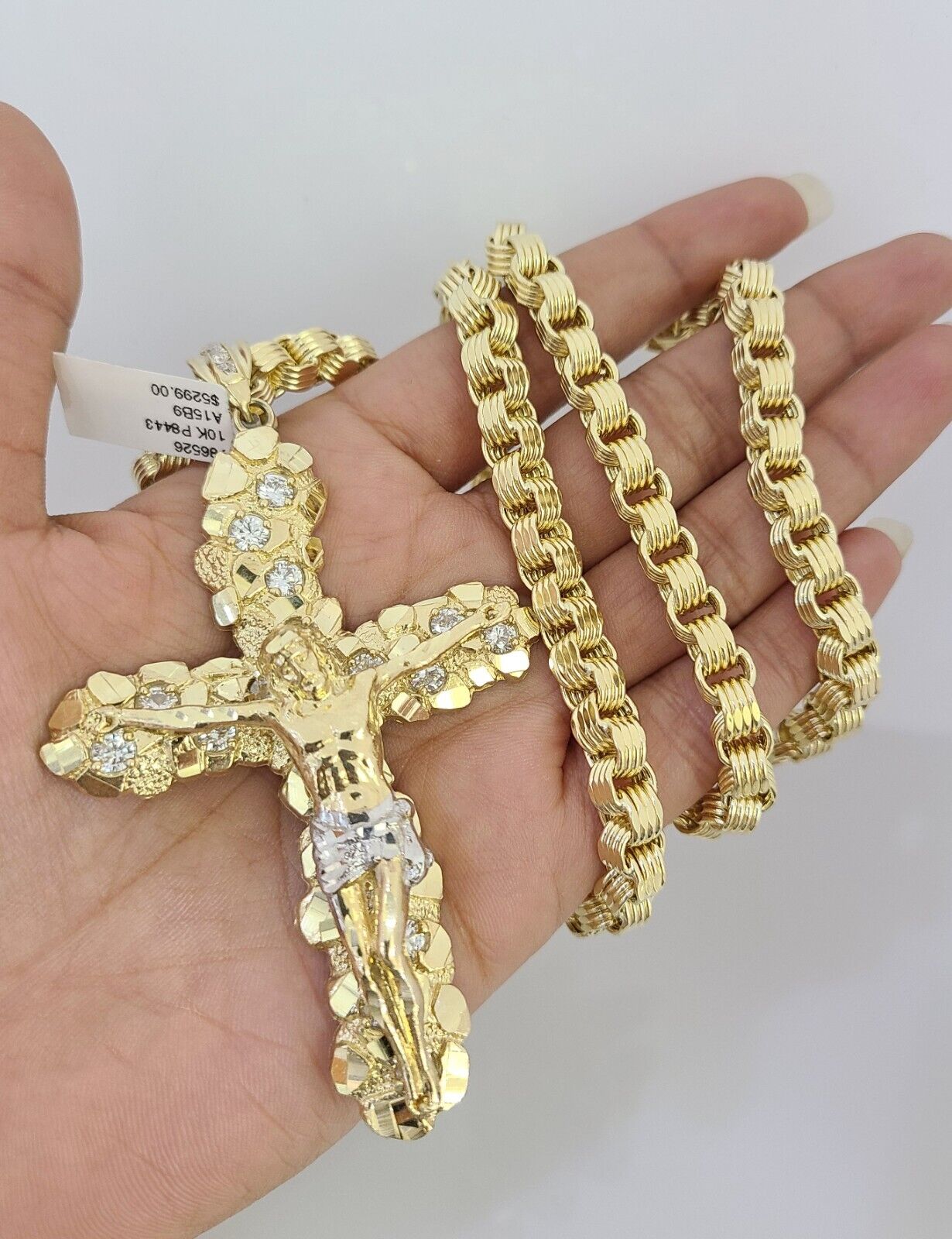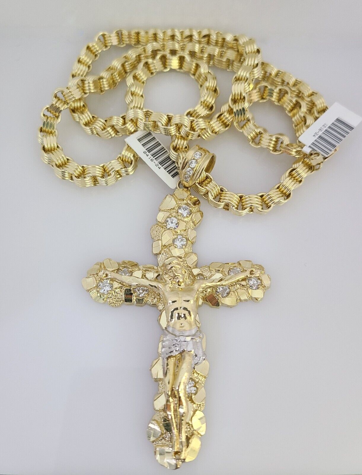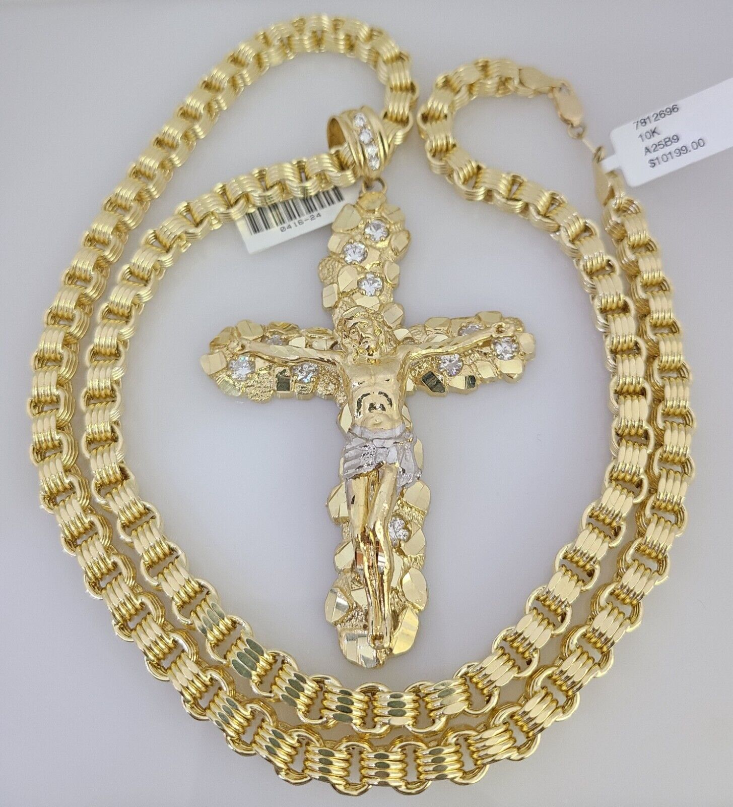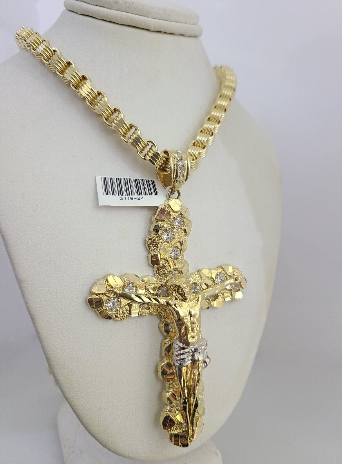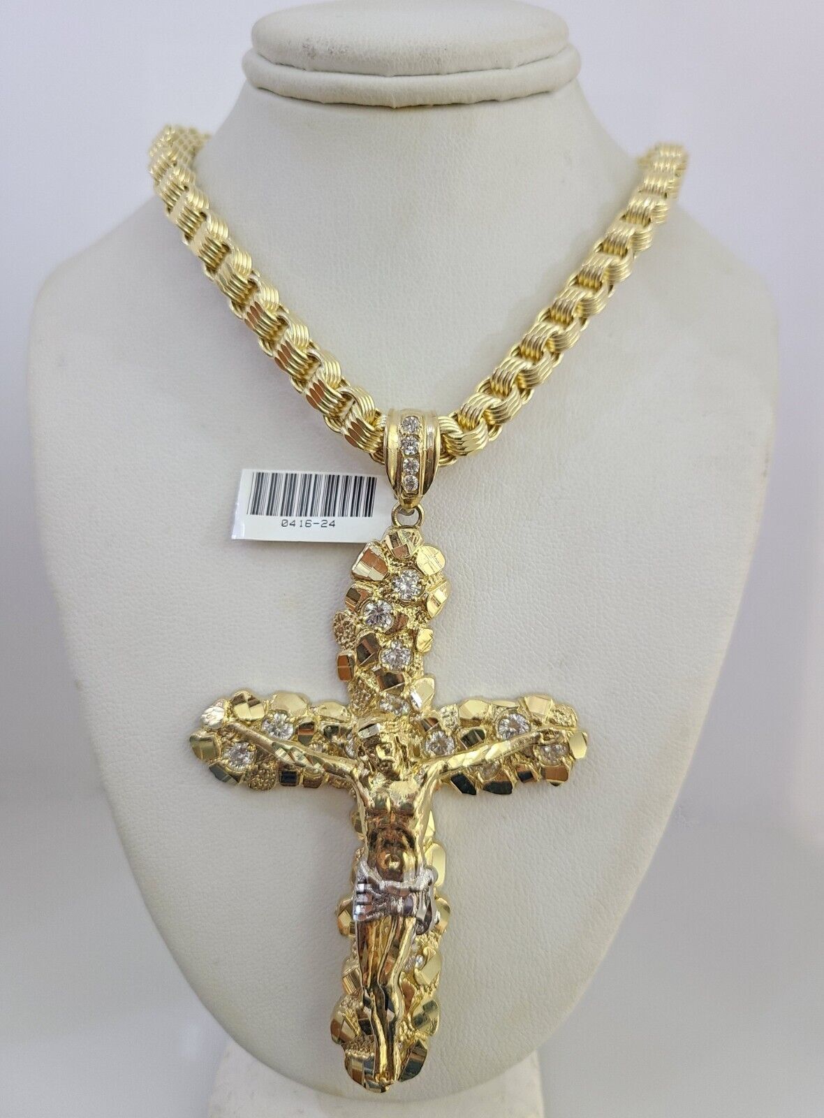 We present You with This Absolutely Stunning Real 10k Yellow Gold Byzantine link chain with Jesus Cross Charm. It has a detailed cut with a very good finish. These Beautiful Chains will not tarnish, discolor, or fade because they are Pure 10K Gold. Please feel free to contact us if you have any queries regarding the item. 26"-A25B9 A15B9 P8443