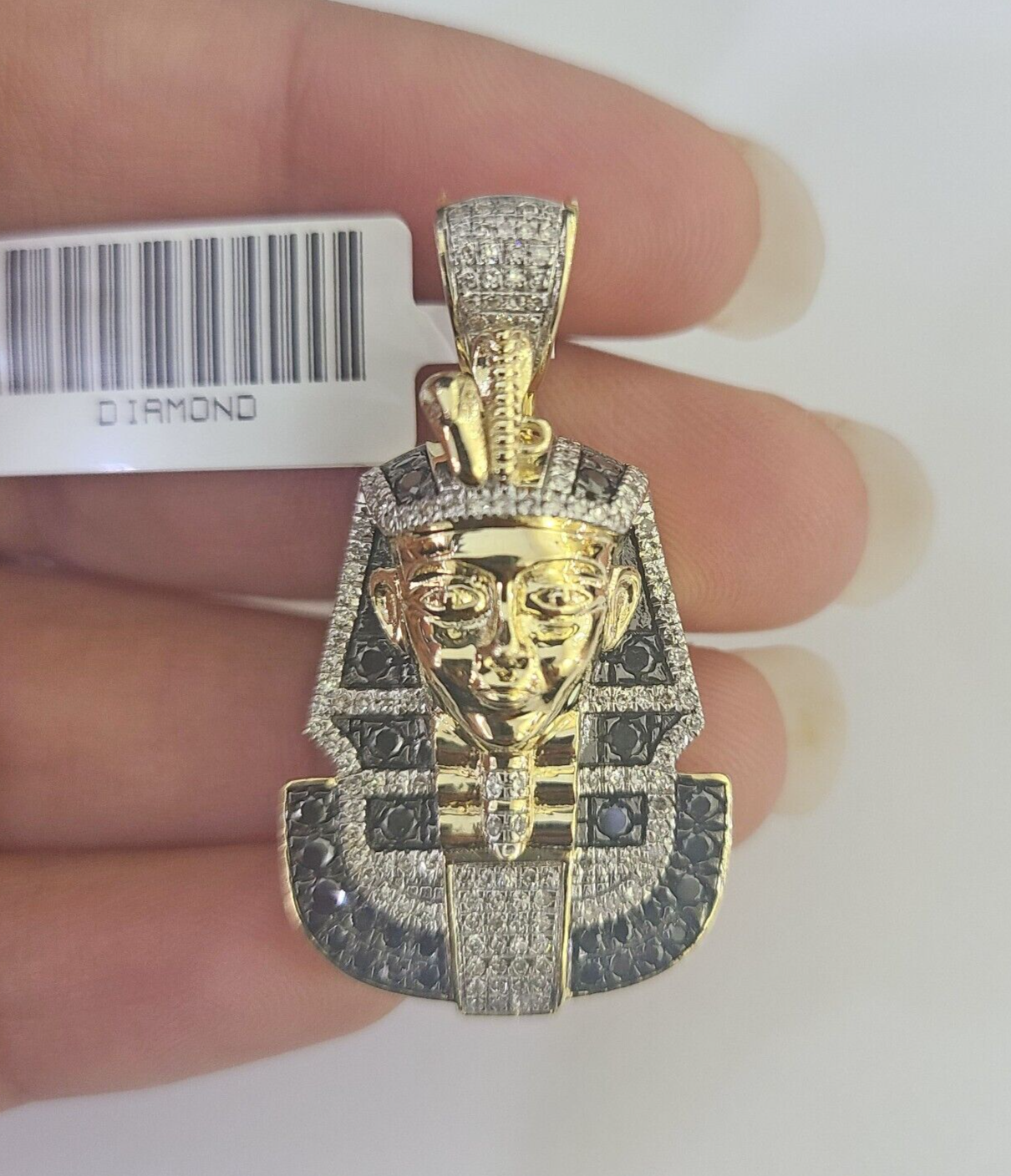10k Pharaoh Head Diamond Pendant Charm Yellow Gold Men Women Real 10Kt 1.5 inch