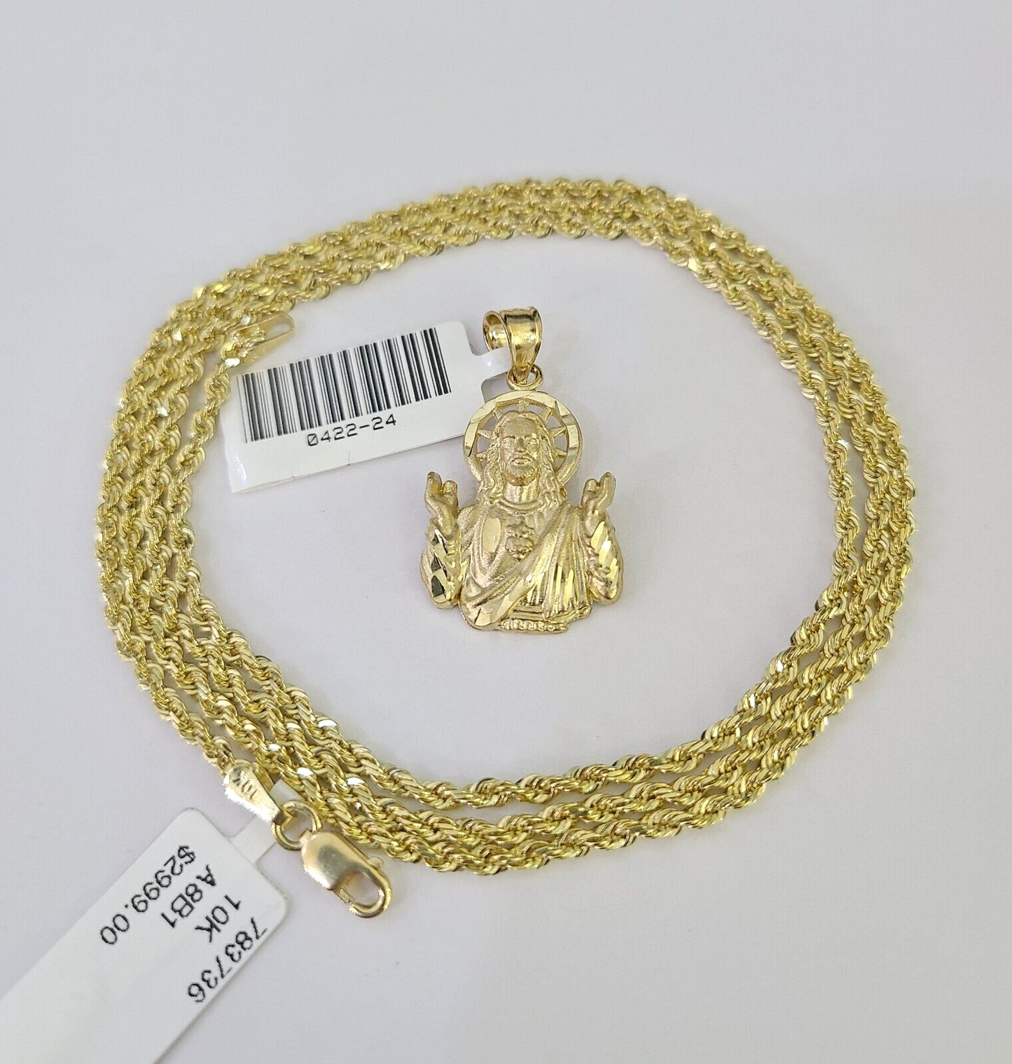 10k Solid Rope Chain 2mm Jesus Pendant Charm Necklace SET 18-22 in Ladies