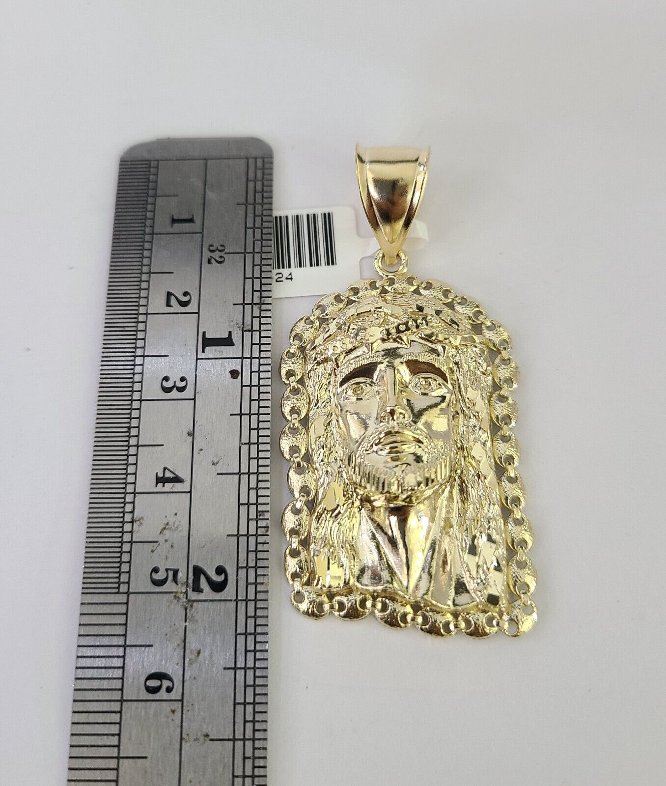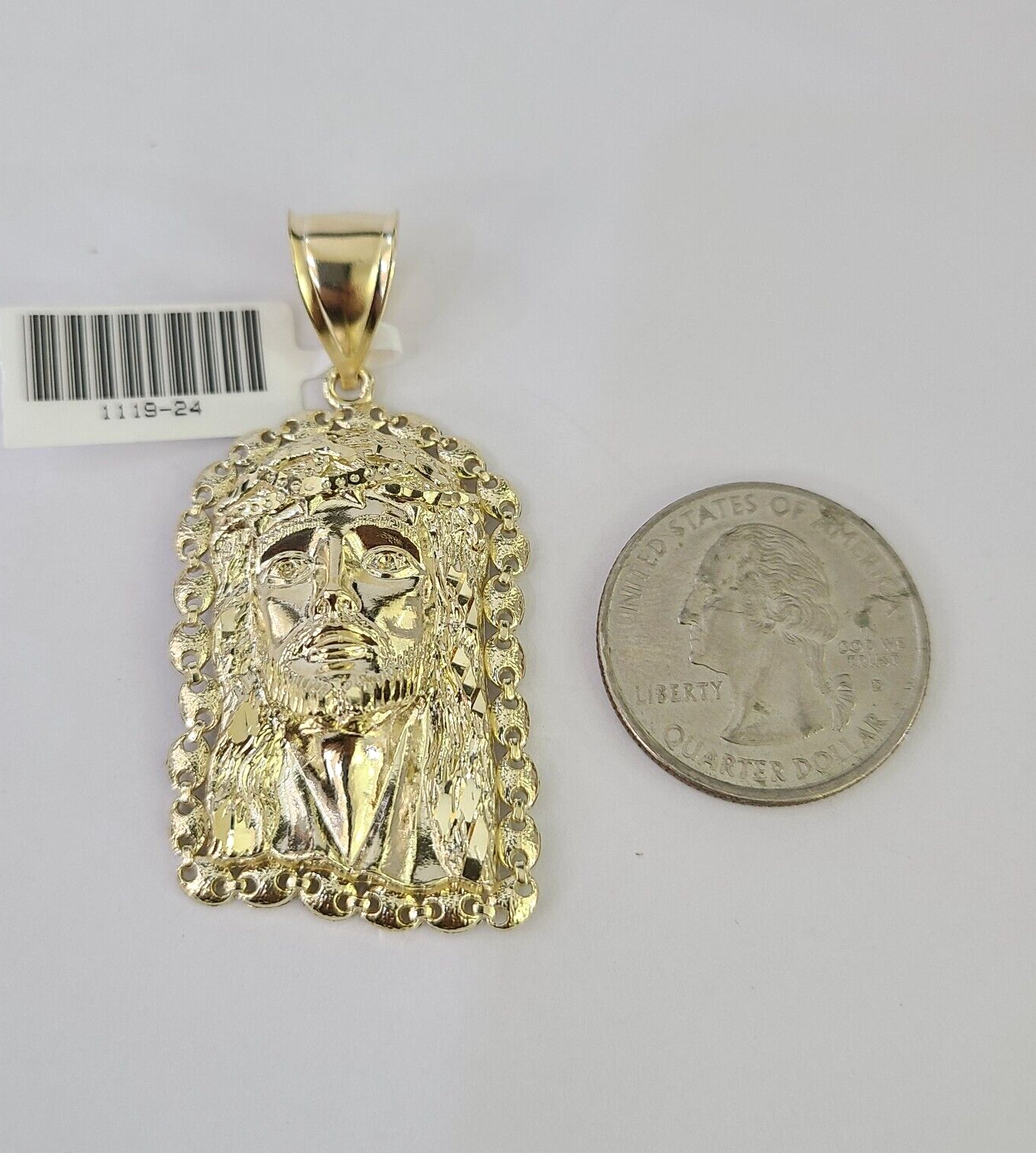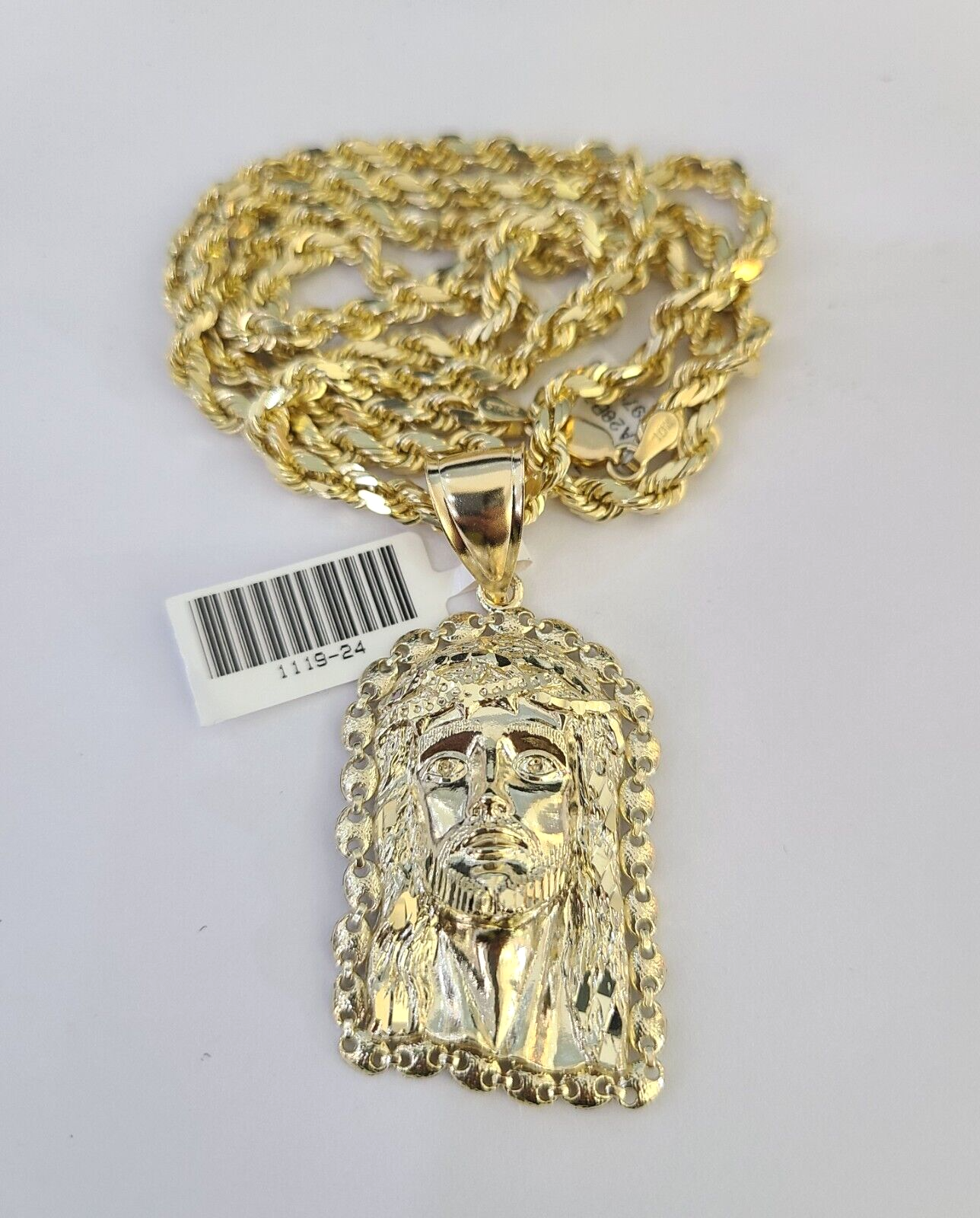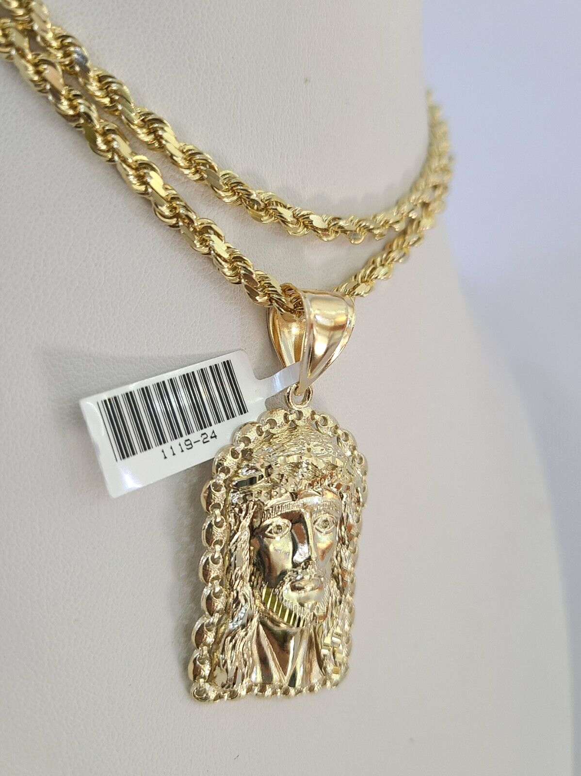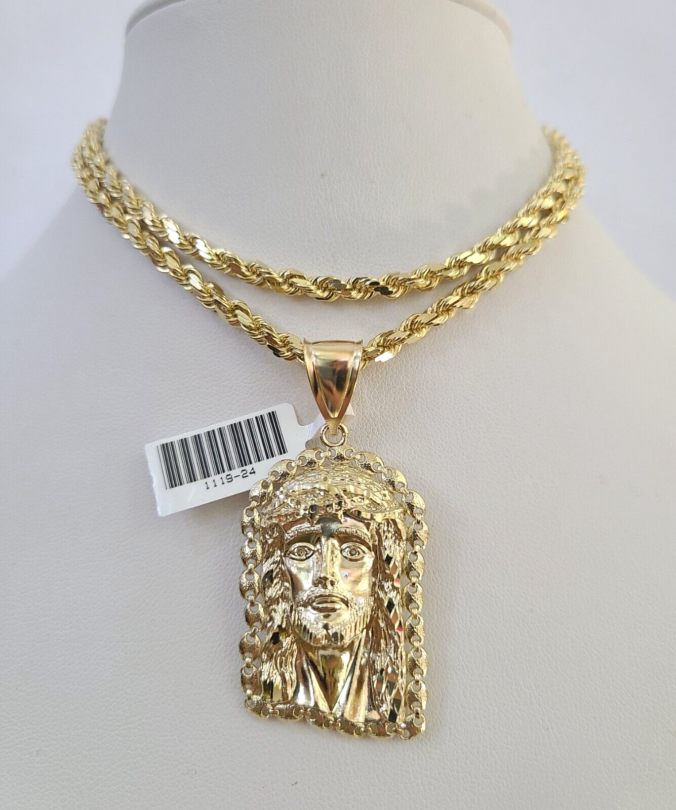 10k Solid Rope Chain 4mm Jesus Head Pendant Charm Necklace SET 20-28 in