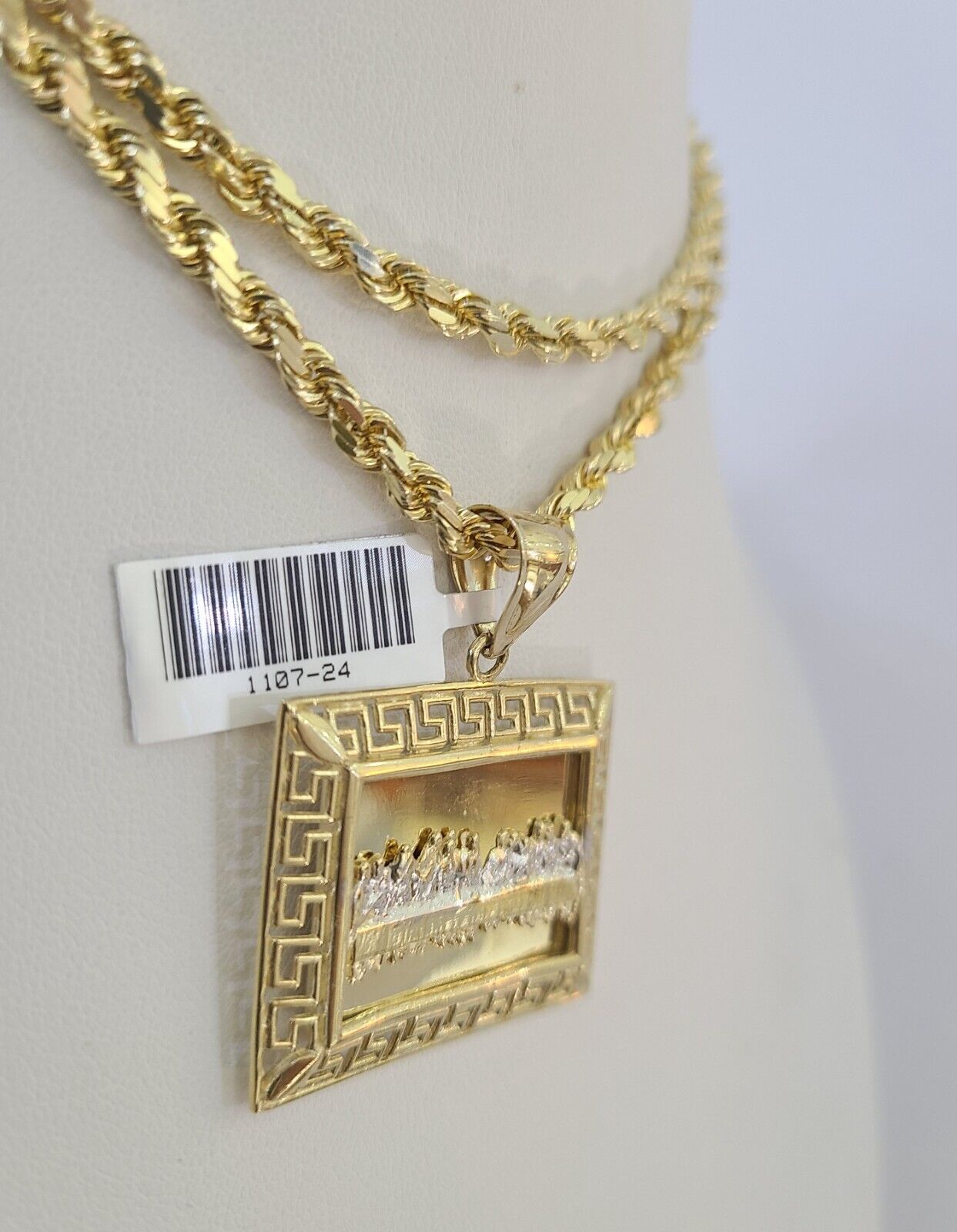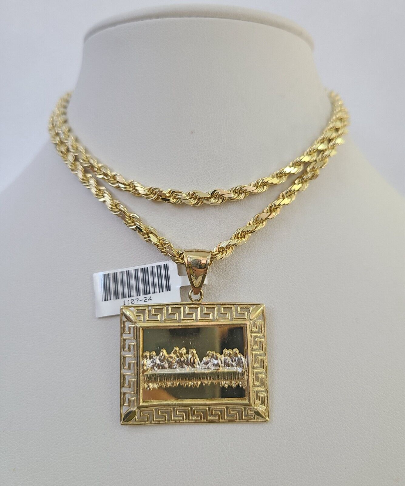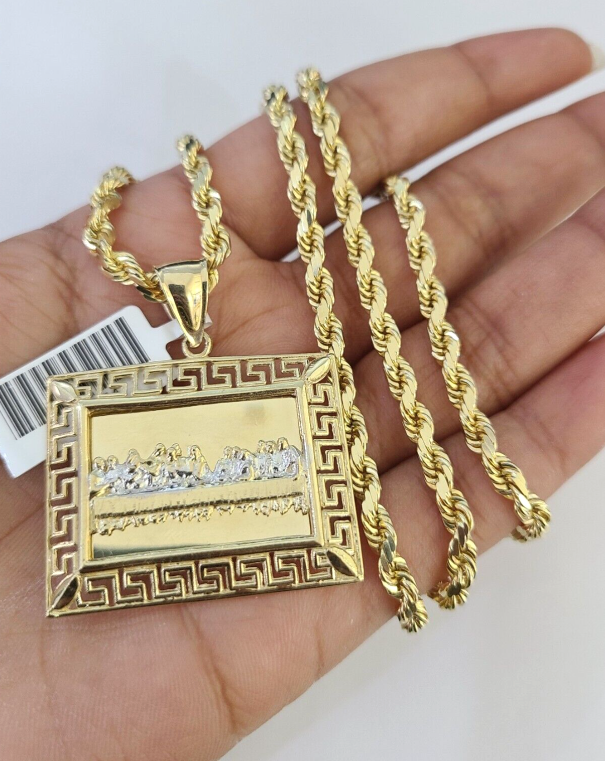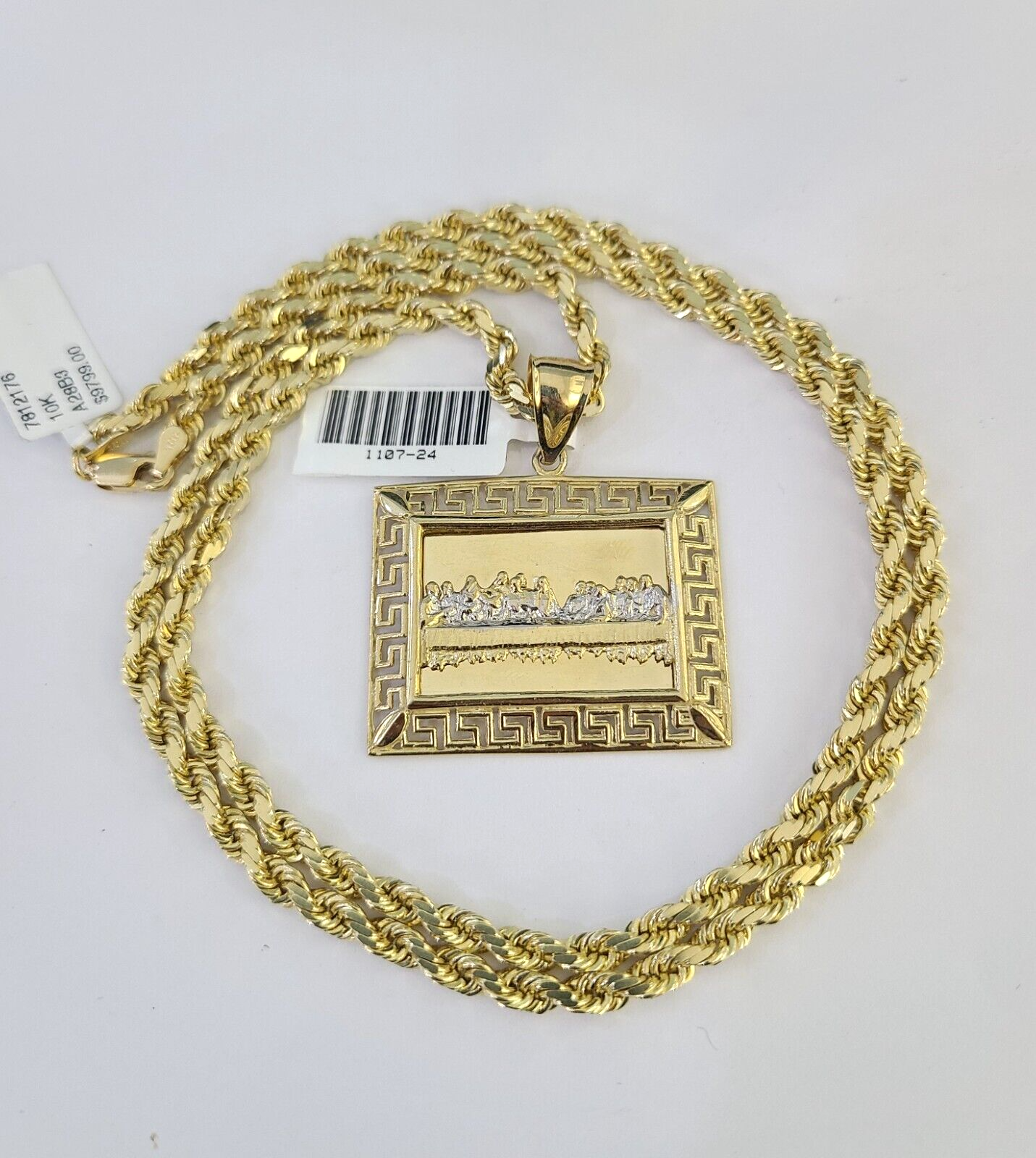 Is Presenting You with This Beautifully Designed Real 10k Yellow Gold Last Supper Charm with 10k 4mm Solid Rope Chain in various lengths. Please feel free to contact us if you have any queries regarding the item. These Beautiful chain and pendants will not tarnish, discolor, or fade because they are Pure 10K Gold. 24"-A28B3 , A9B0