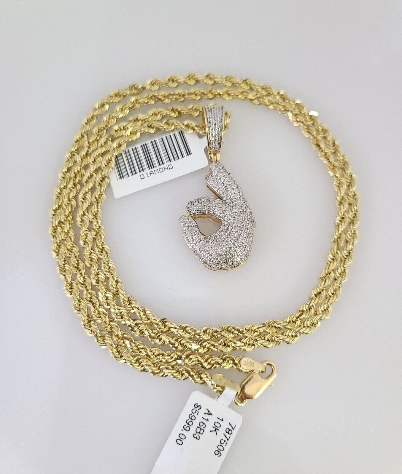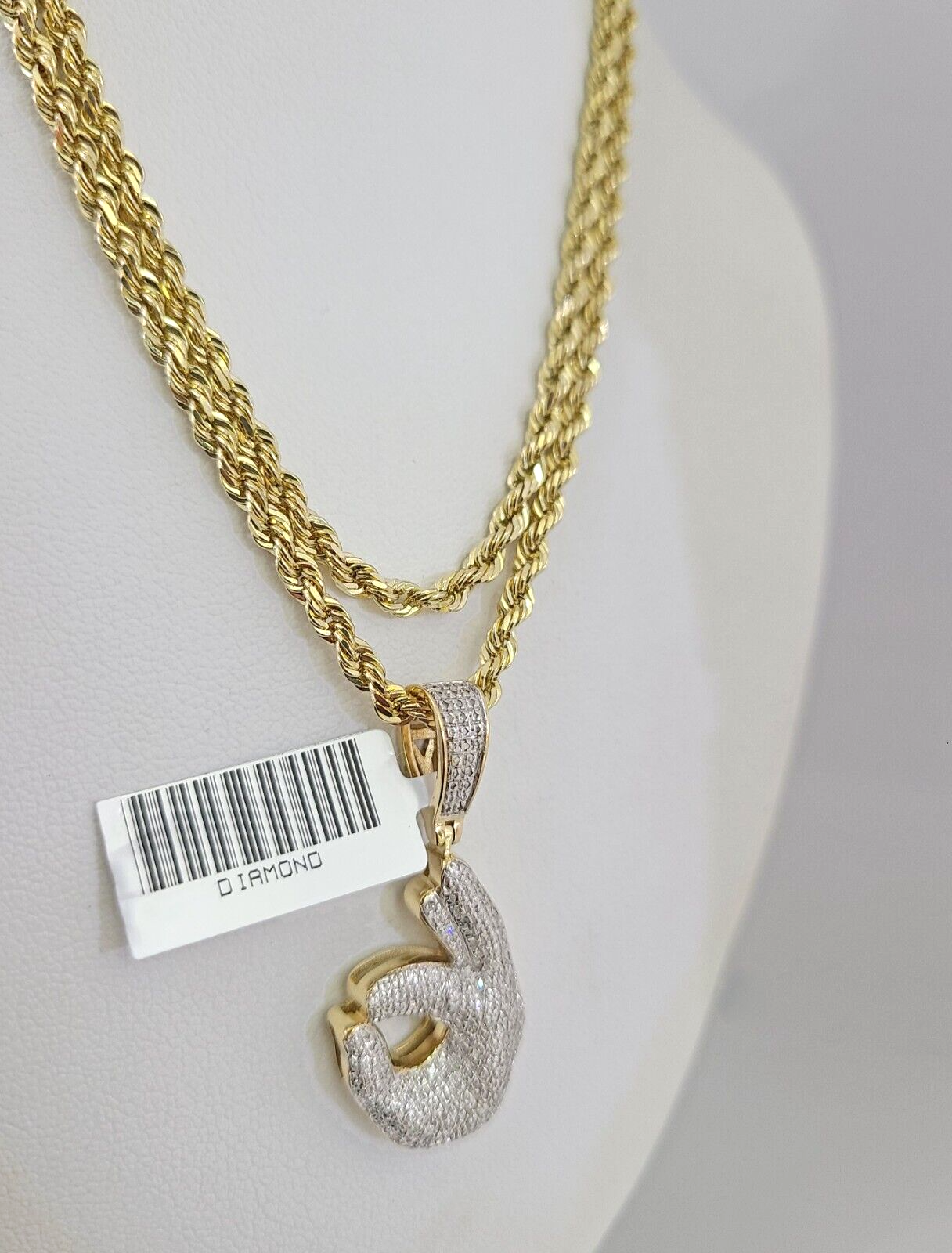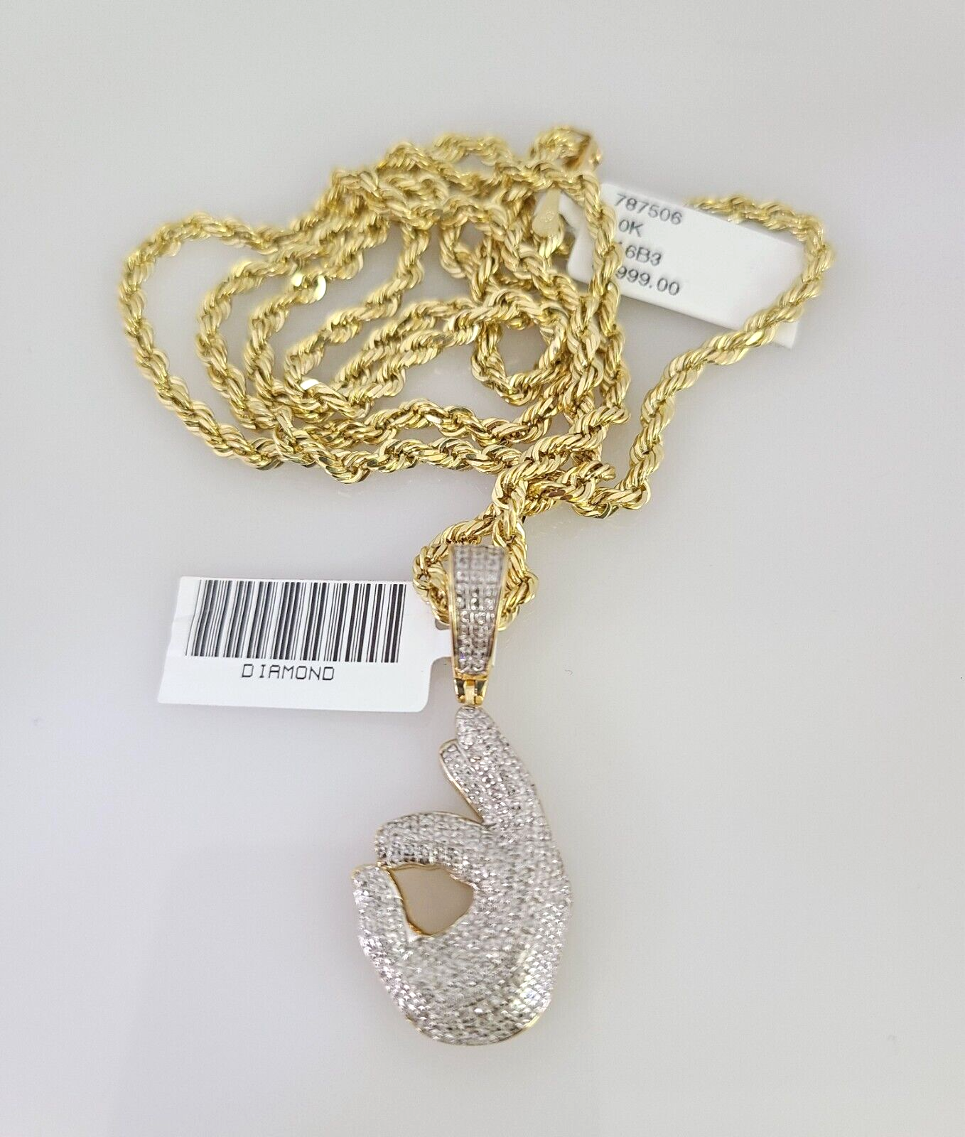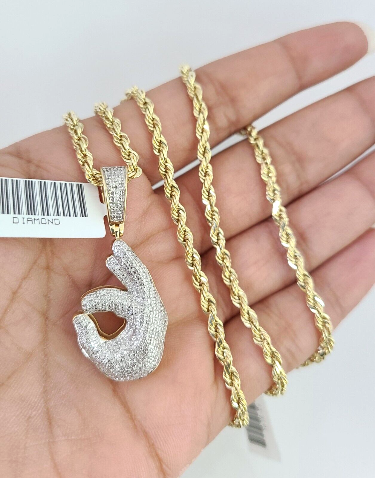 10k Solid Rope Chain OK Hand Pendant Diamond Necklace 20"-28" Gold Set 3mm Charm