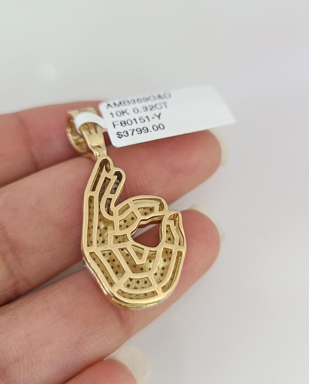 Is Presenting You with This Beautifully Designed Real 10k Diamond OK Hand Charm with 10k 3mm Solid Rope Chain in Various lengths. Please feel free to contact us if you have any queries regarding the item. These Beautiful chains and pendants will not tarnish, discolor, or fade because they are Pure 10K Gold. 24"-A16B3 , AMB369G&D