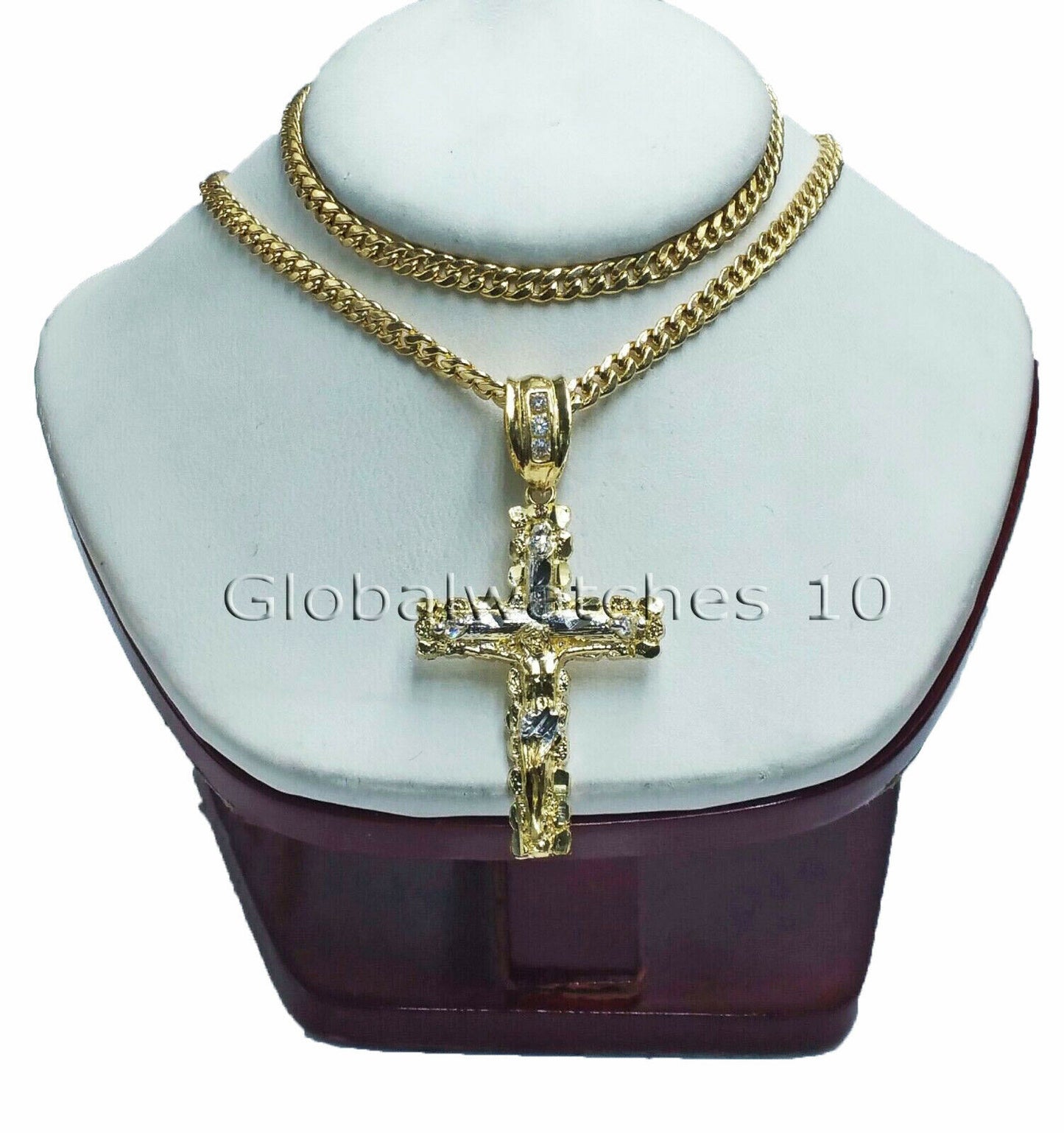 Is Presenting You With This Genuine 100% 10K Pure Yellow Gold Jesus Crucifix Cross Charm/Pendant in a Diamond Cut with Miami Cuban Chain for Men/Women. The length of the Chain is 26 Inches, 5mm Width. The Charm is 1.75 Inches Long. It Is Made With Detailed Cut And Very Good Finishing. Please feel free to contact us if you have any queries regarding the item!