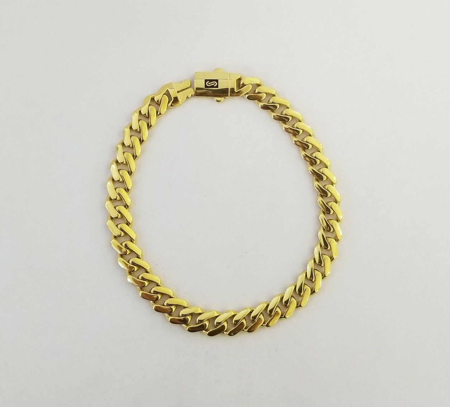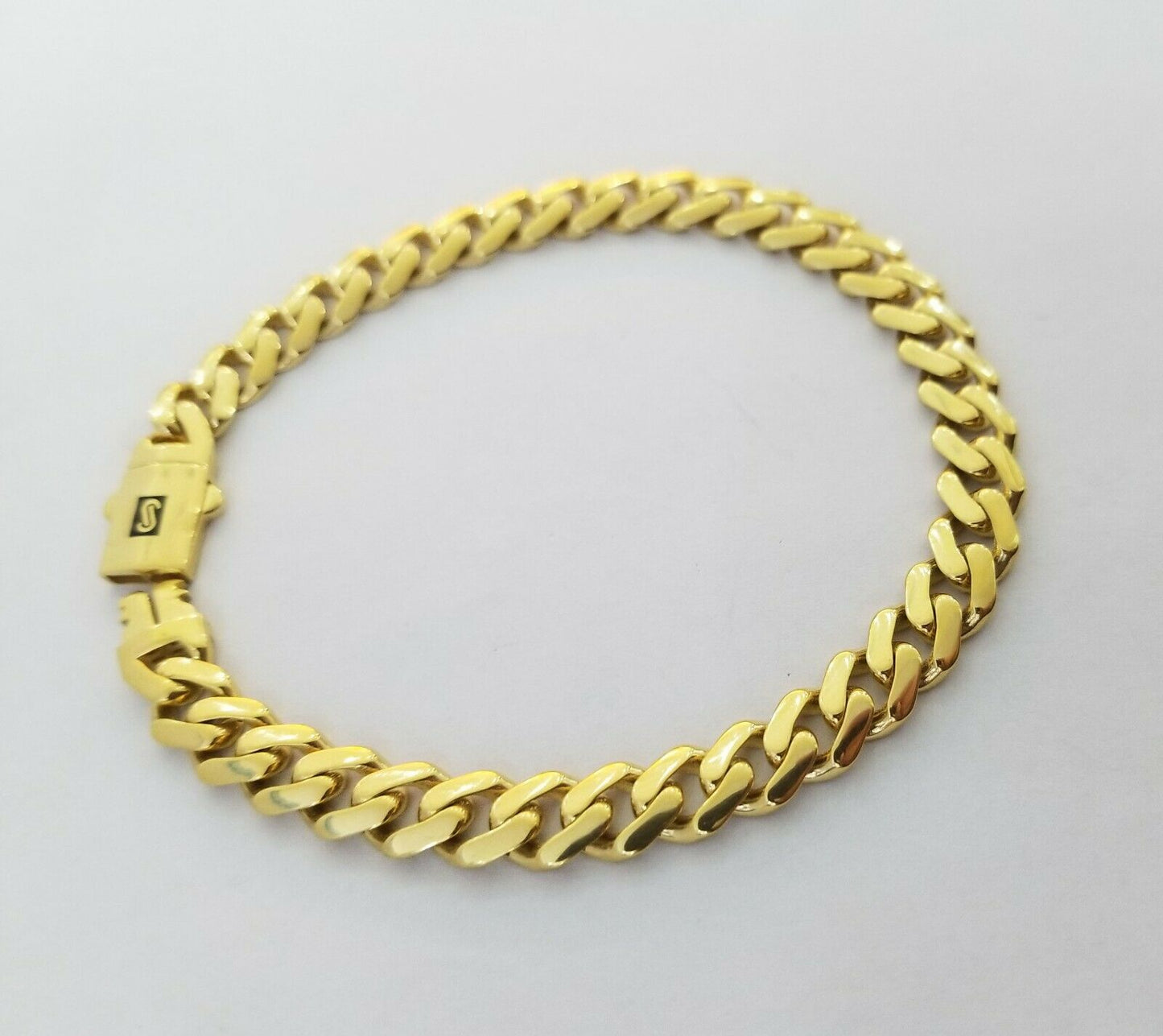 10k Yellow Gold Royal Monaco Miami Cuban Link chain,8mm Bracelet w Box Clasp 8"