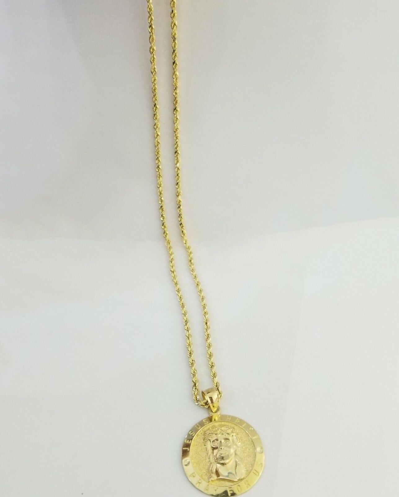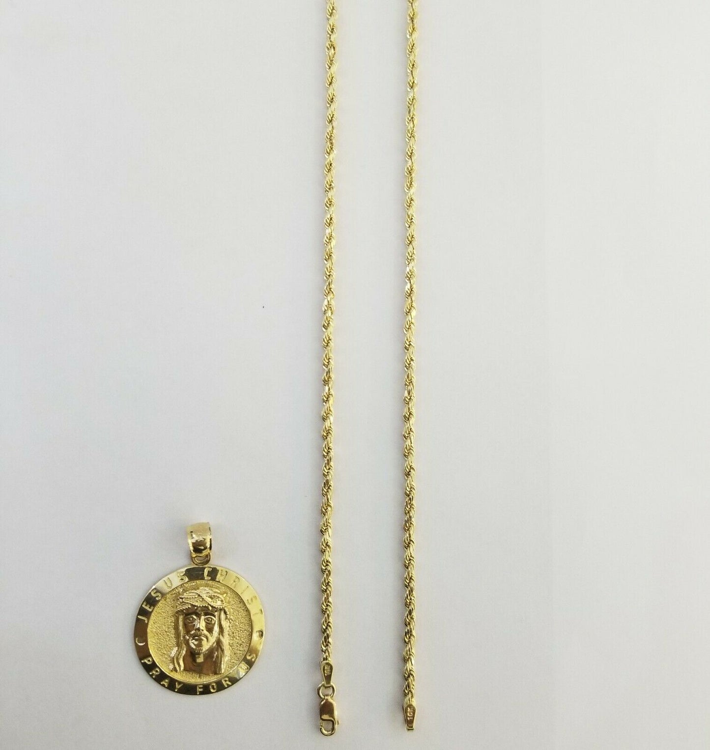 10kYellow Gold round/circle Jesus charm with18"inch rope chain 2mm,10kt gold set