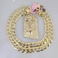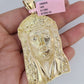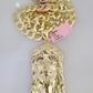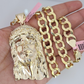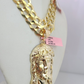 14k Gold Chain Jesus Head Charm Solid Cuban Curb 10mm 20"-30" SET Necklace