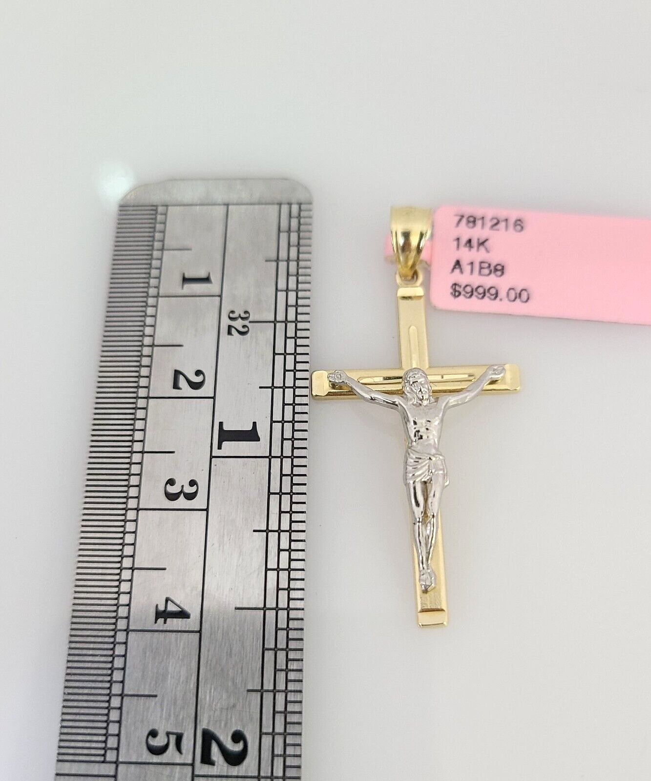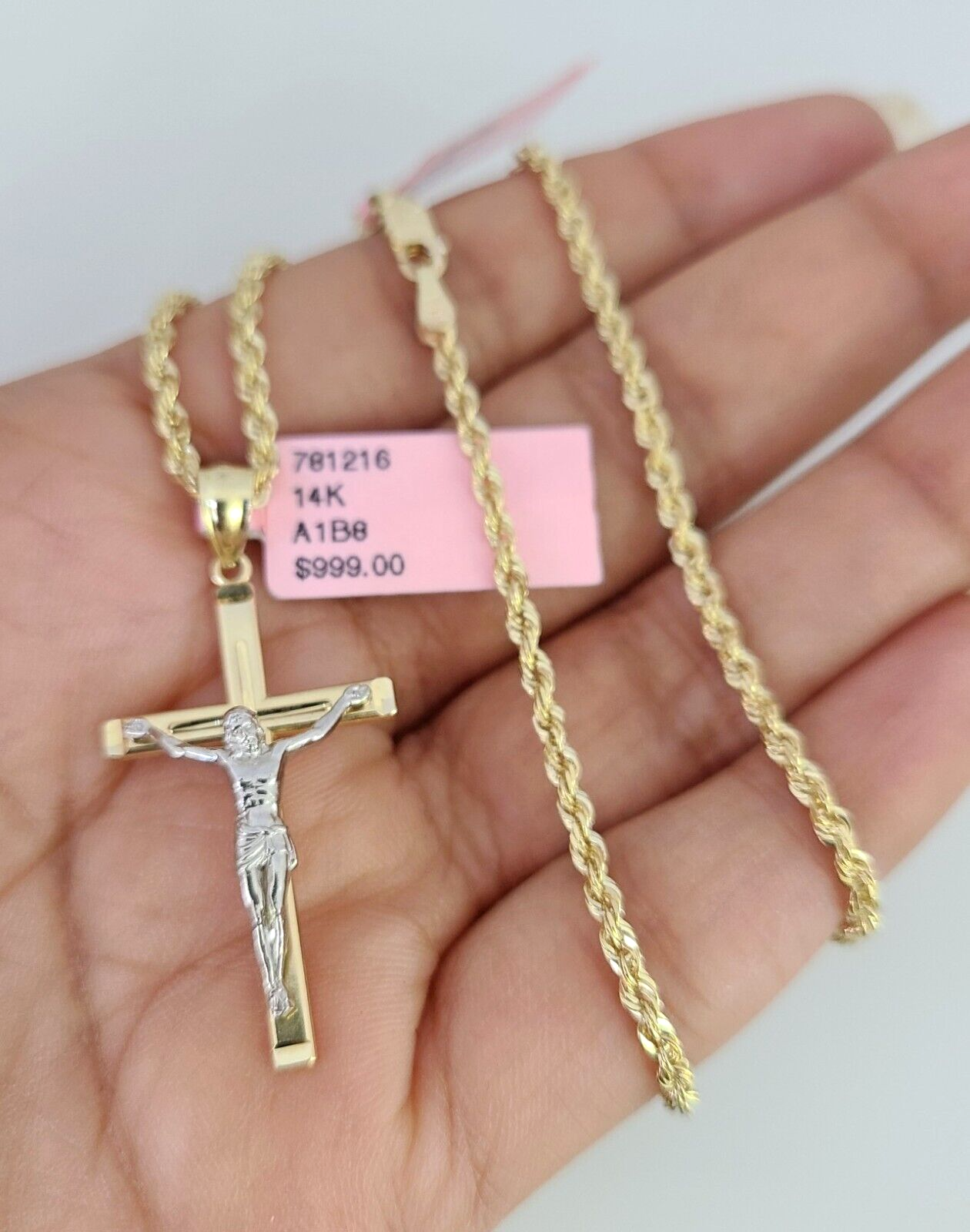 Is Presenting You with This Beautifully Designed Real 14k Yellow Gold Jesus Crucifix Cross Charm Pendant with 14k 2mm Solid Rope Chain in various lengths. Please feel free to contact us if you have any queries regarding the item. These Beautiful chains and pendants will not tarnish, discolor, or fade because they are Pure 14K Gold. 18"-A6B8 , A1B8 NG