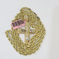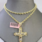 14k Yellow Gold Rope Chain & Jesus Nugget Cross Charm SET 3mm 26 Inches Necklace
