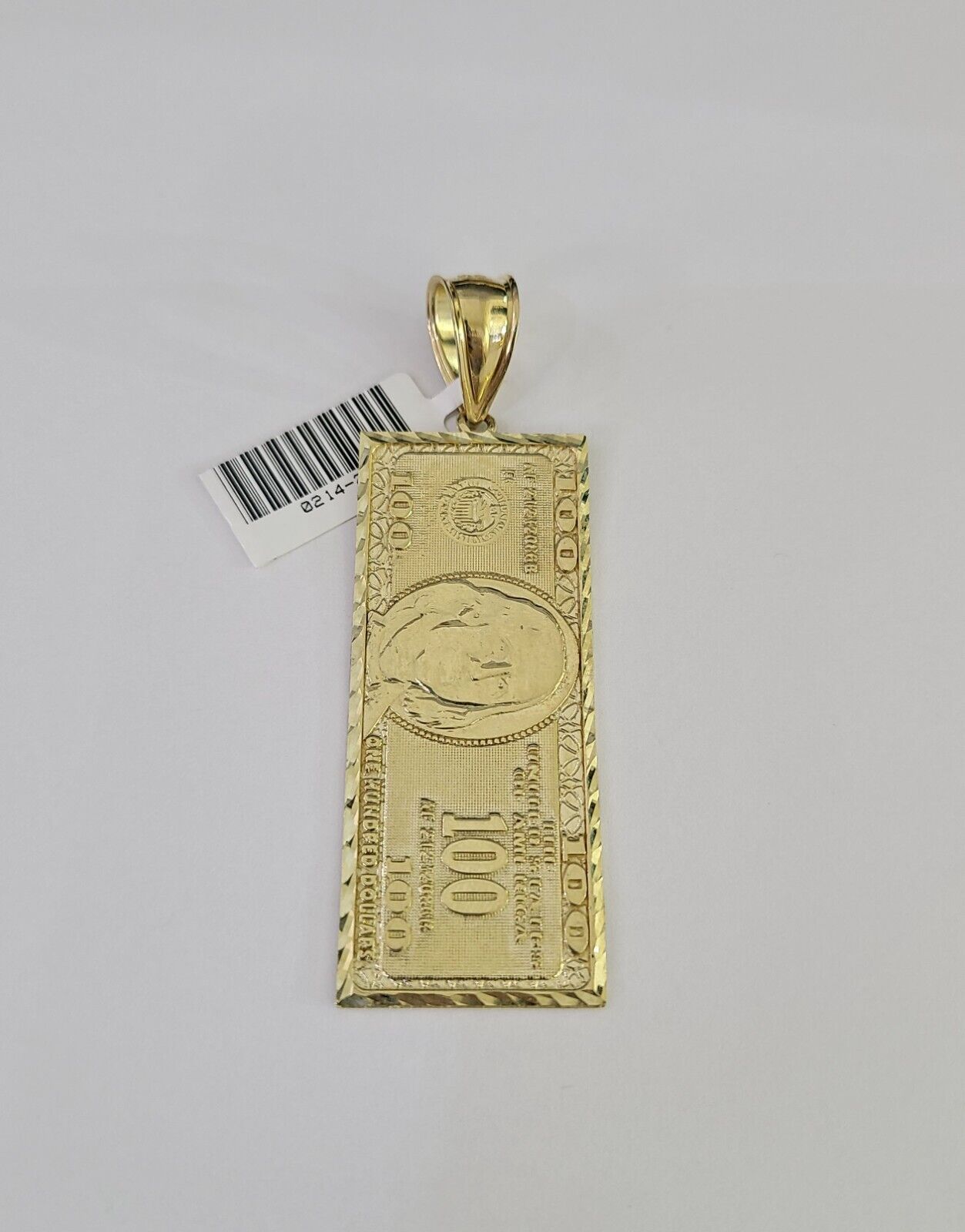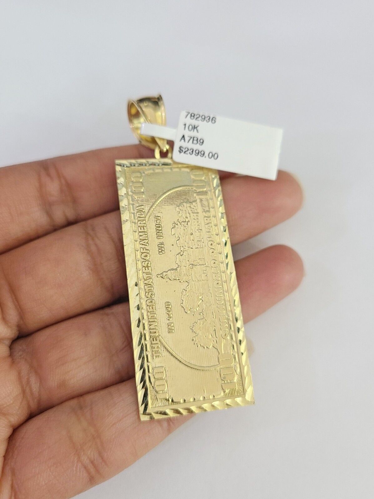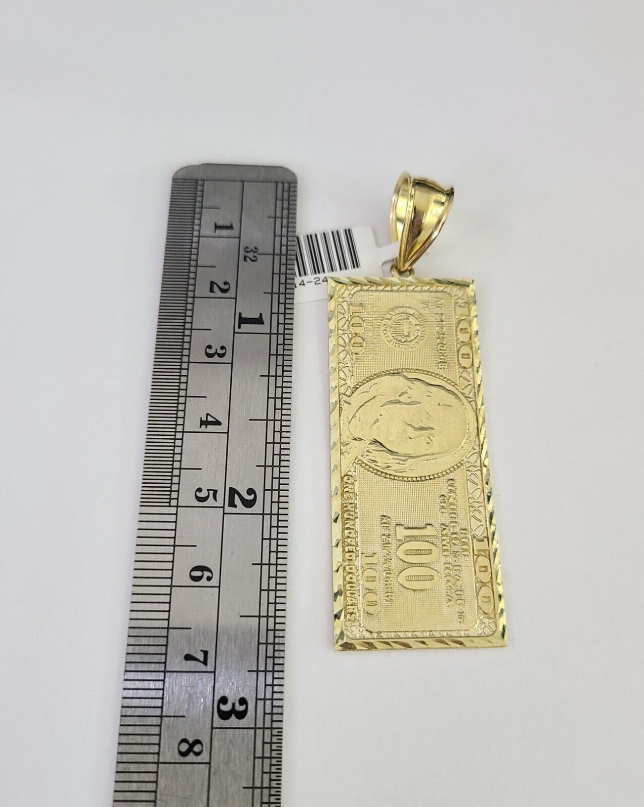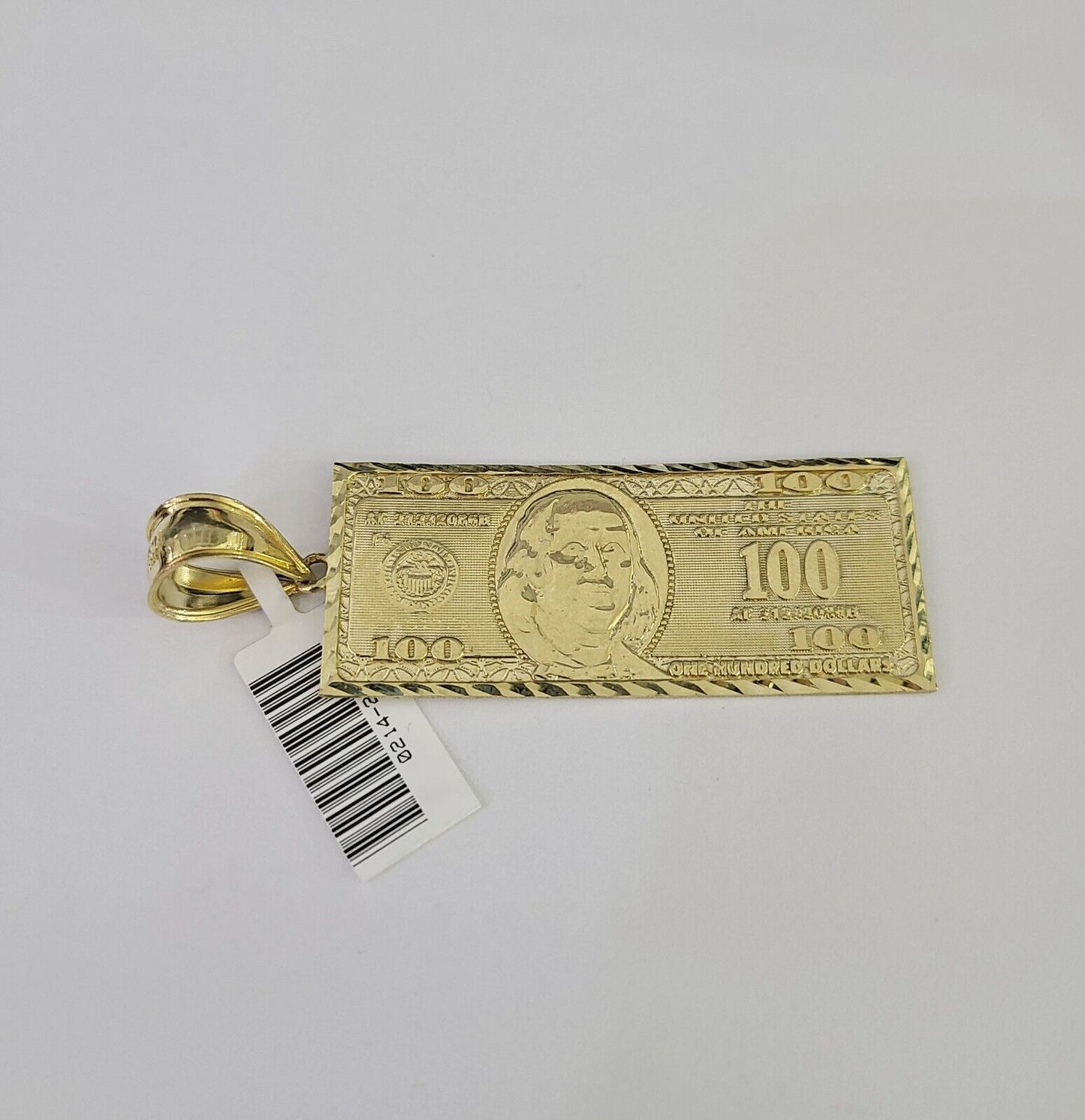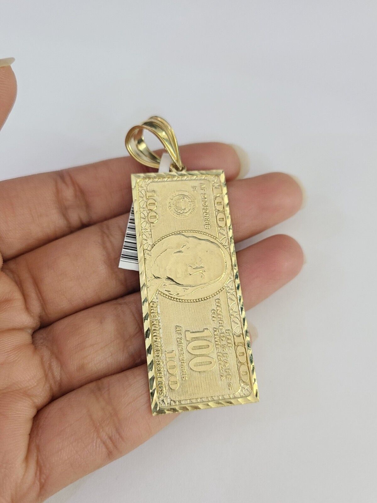 Real 10K Gold 100 Dollar Bill Pendant Diamond Cut 10kt Yellow Gold Charm