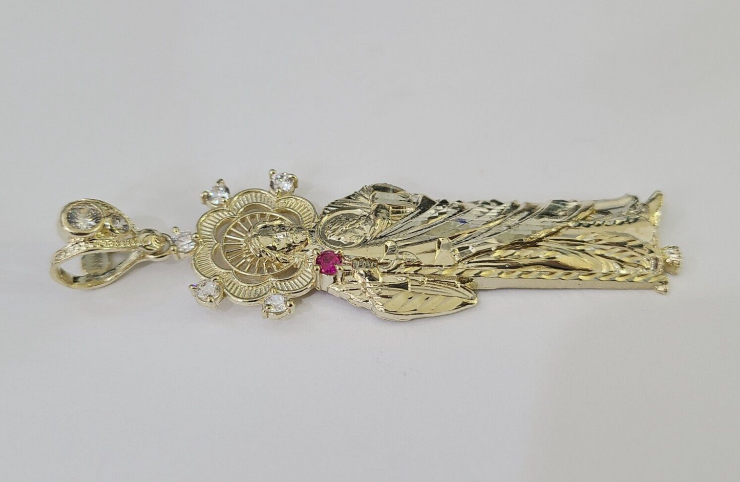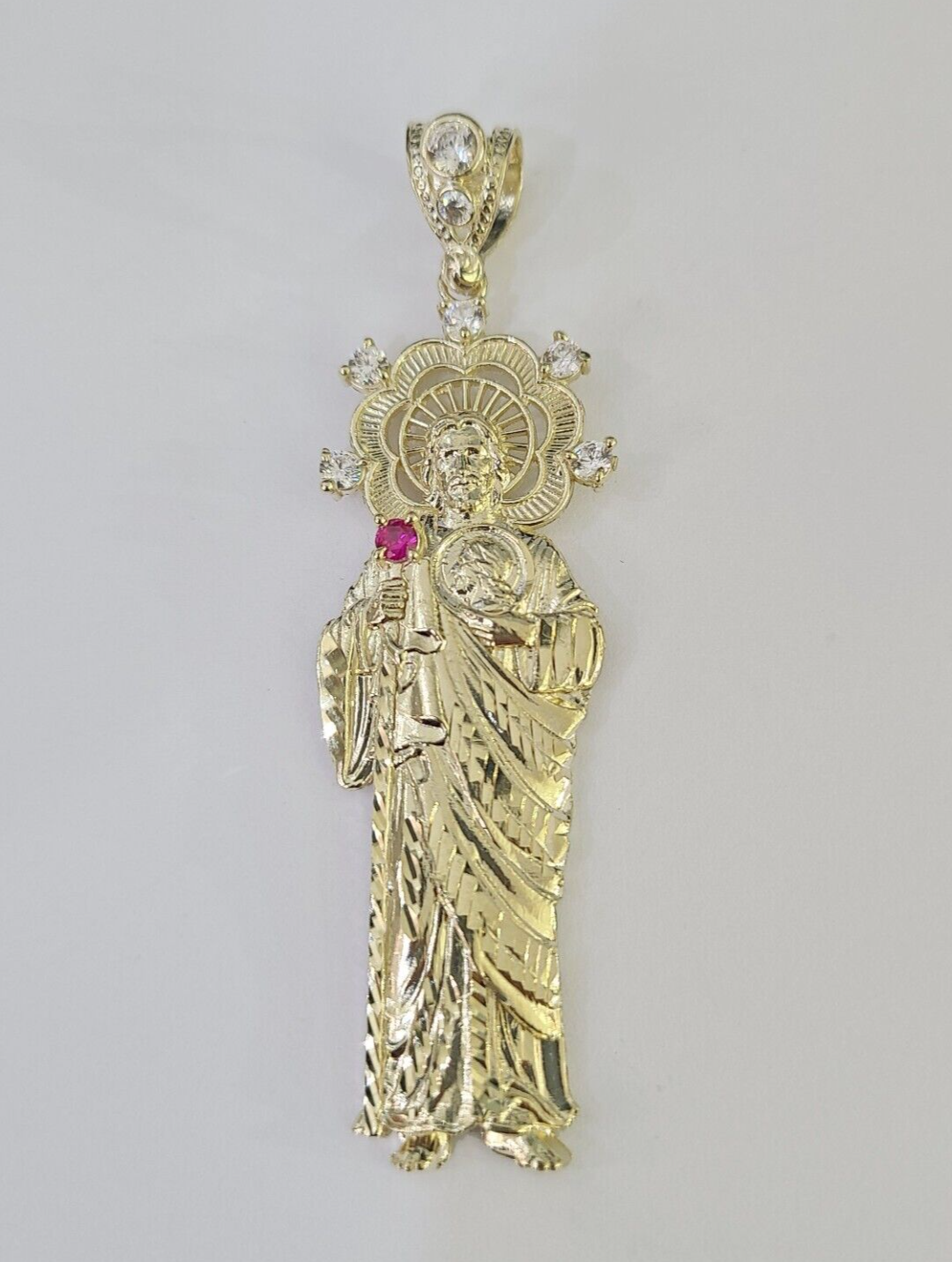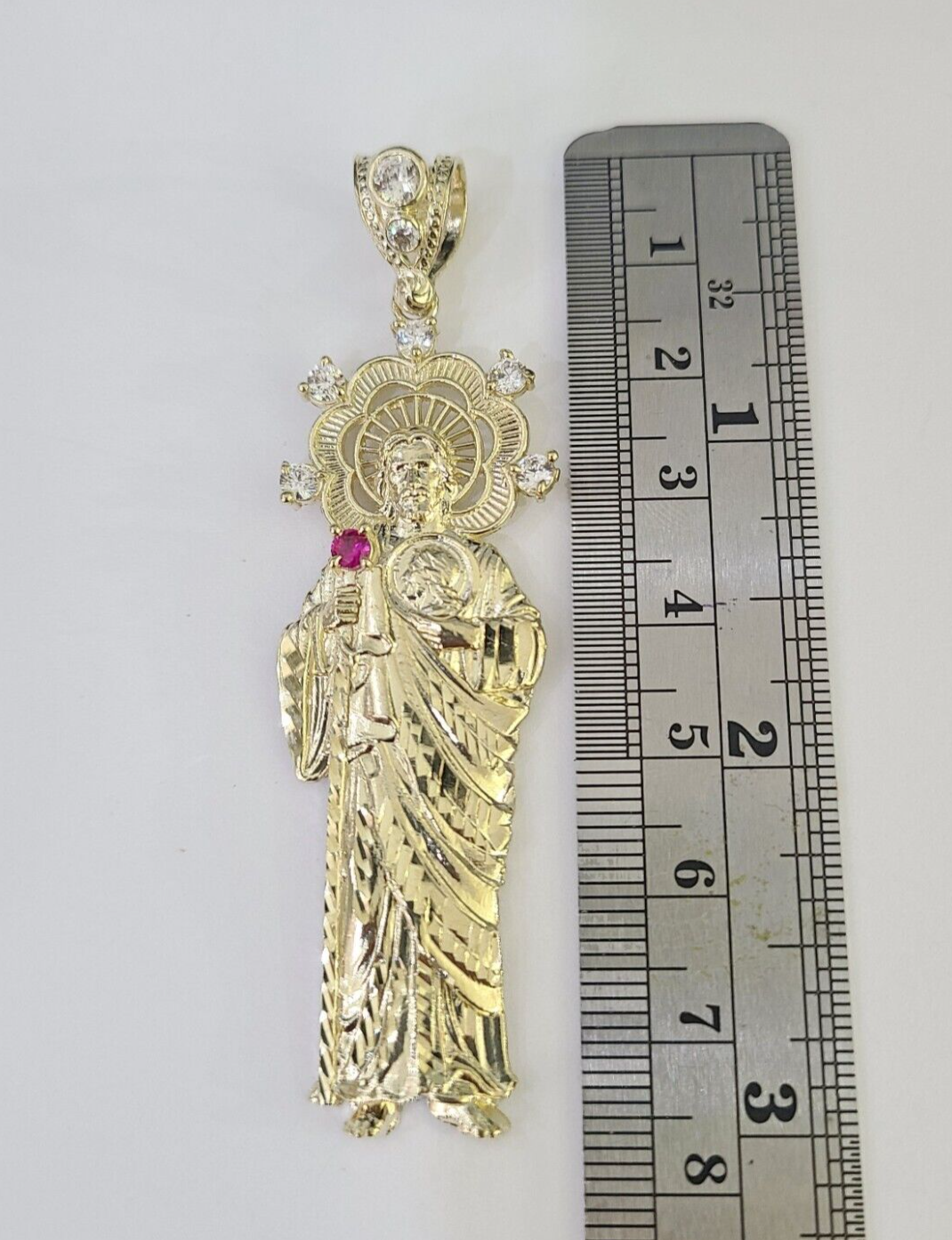 Real 10K Gold Saint Jude Charm Diamond Cut 10kt yellow Gold Pendent 3"