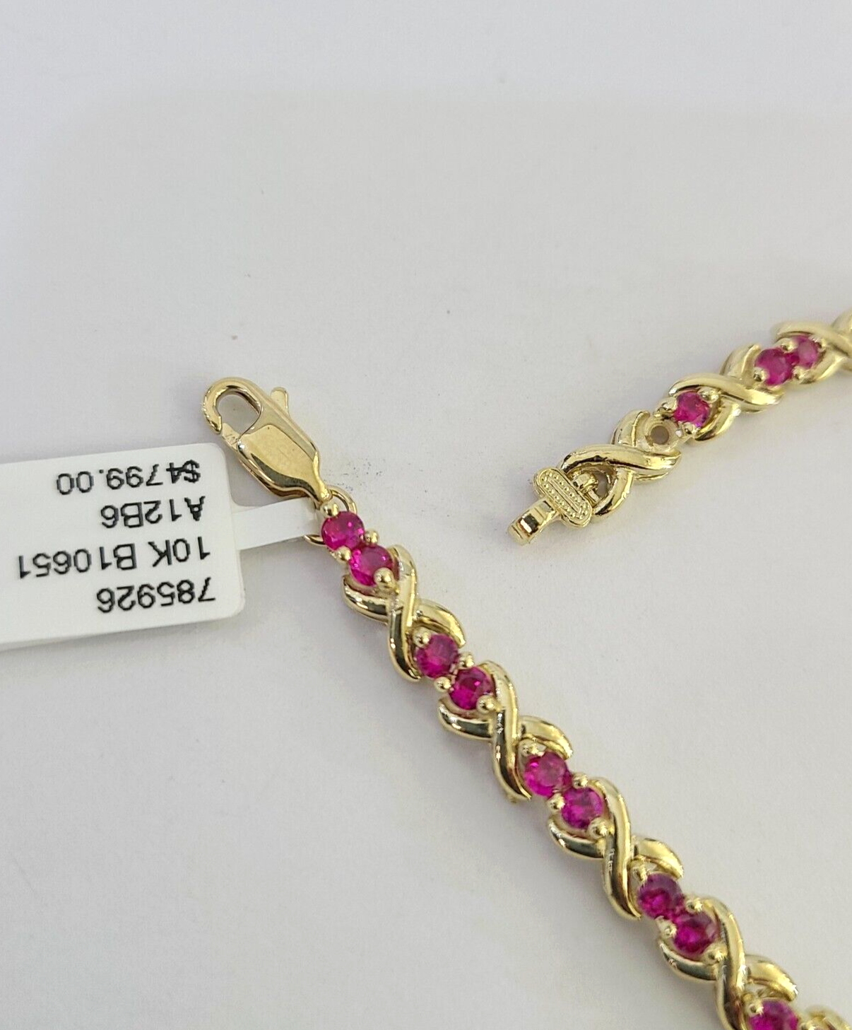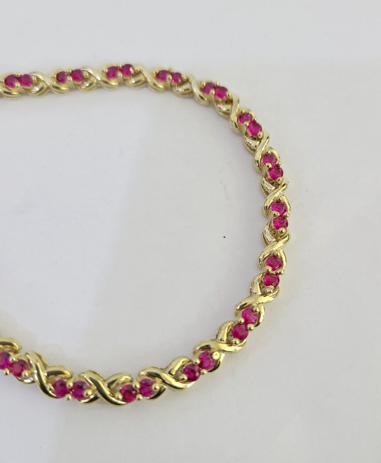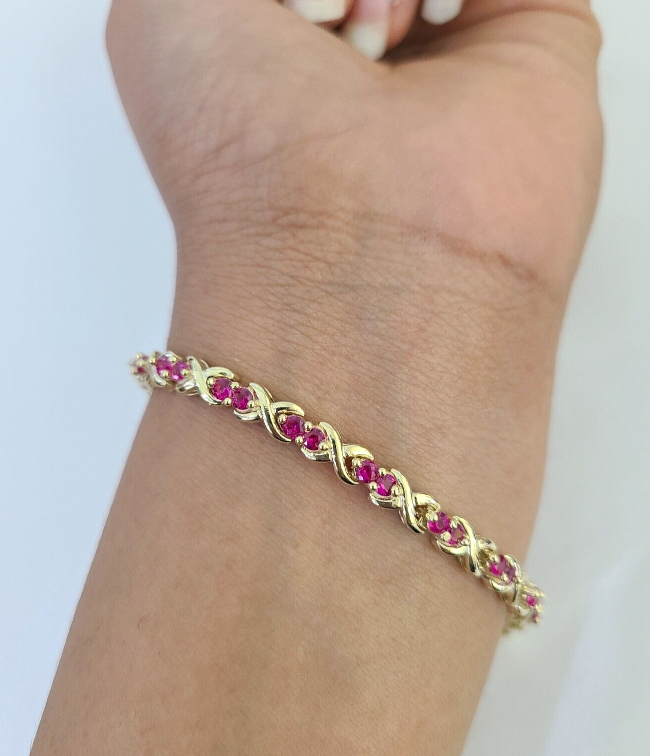 Real 10K Yellow Gold Pink Tennis Bracelet 4mm 7.5 Inches 10kt Gold