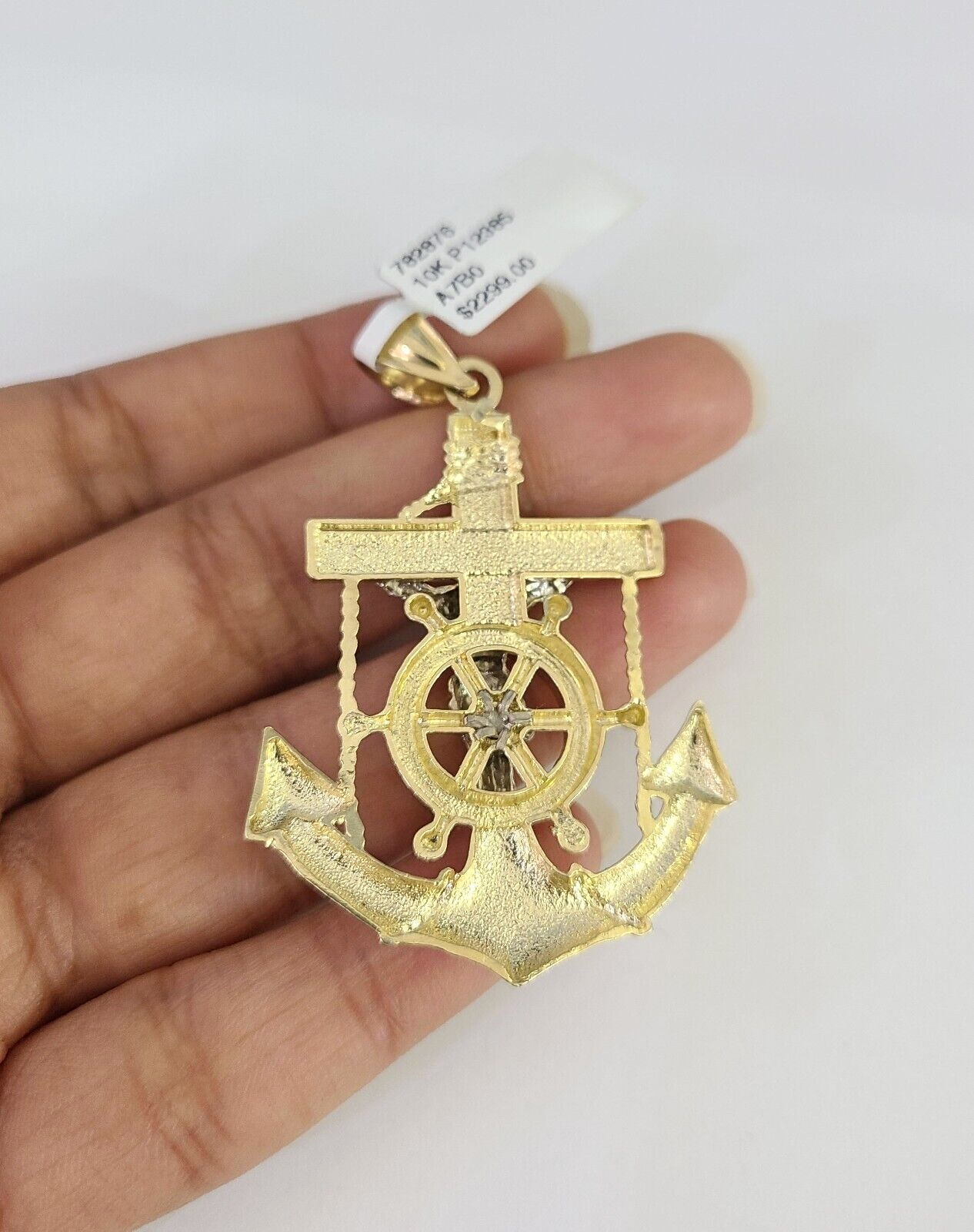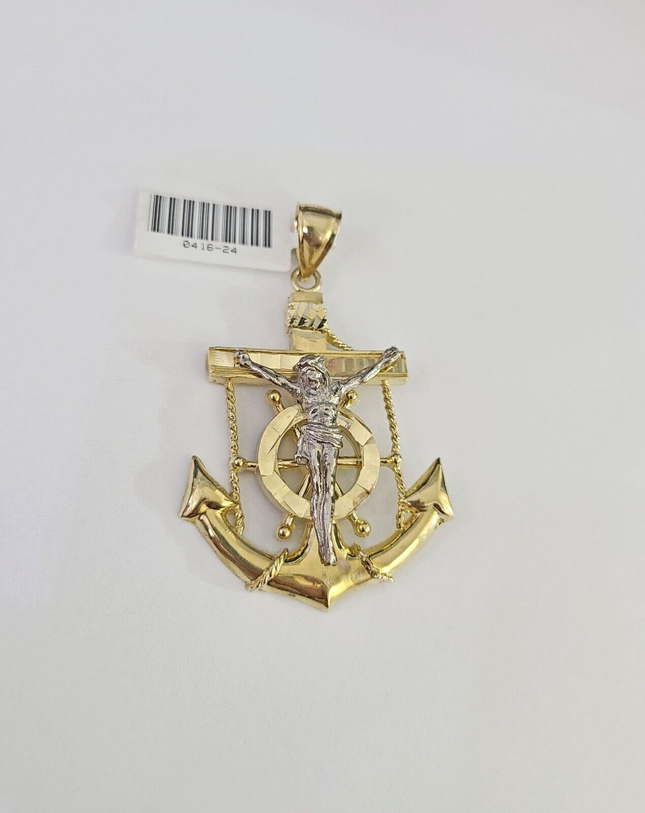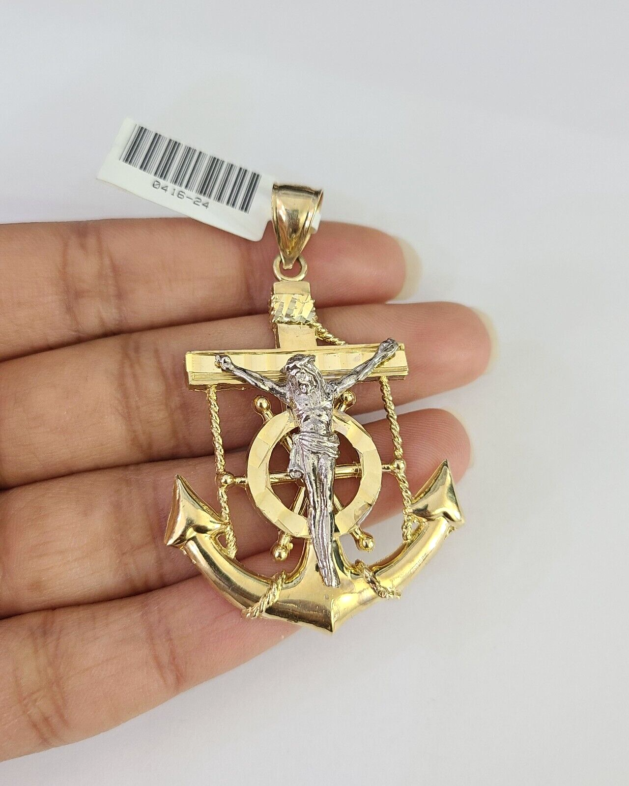 Real 10kt Jesus Crucifix Anchor Pendant Charm Yellow Gold 10Kt Genuine