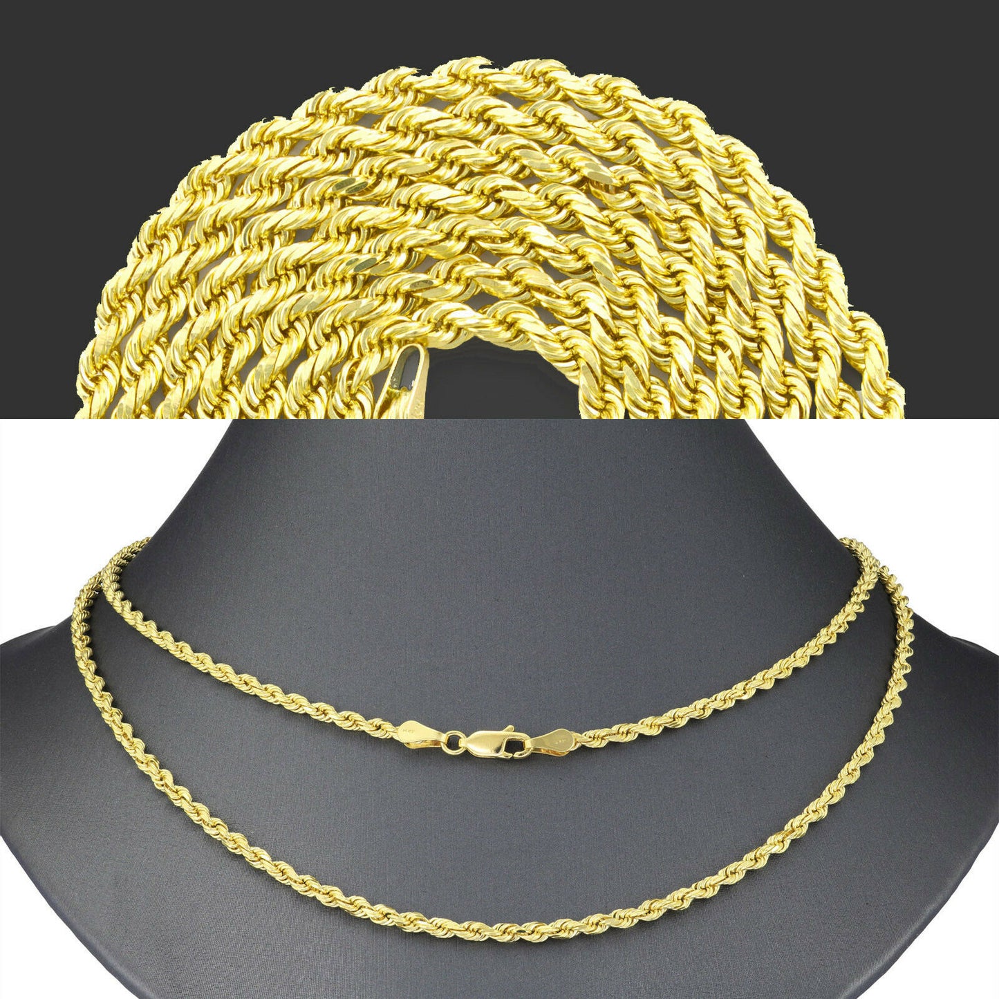 REAL 14k solid Gold Rope Chain Necklace 24" Inches 3mm Mens, yellow Gold, link